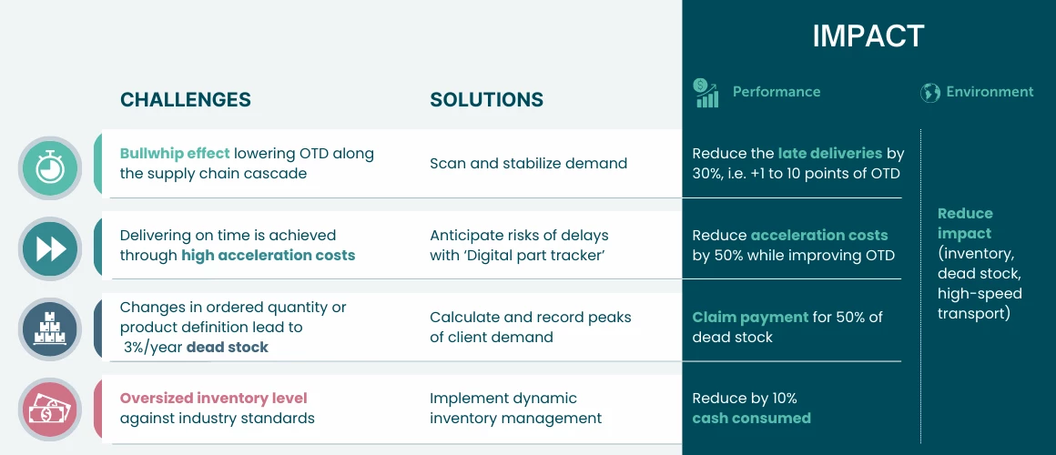 CYLAD's support enabled us to rebalance our relationship with our main client. Since the deployment of CYLAD's demand quality measurements, no forecast nor PO have been accepted without being scanned and stabilized