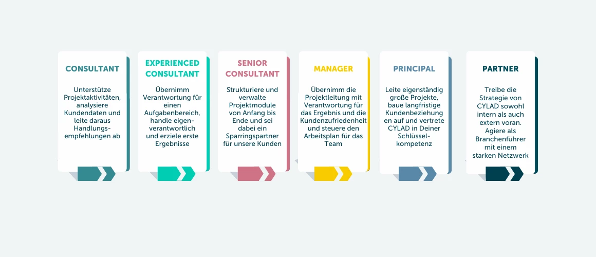 Bei CYLAD sind die Karriereschritte in 6 Stufen eingeteilt.