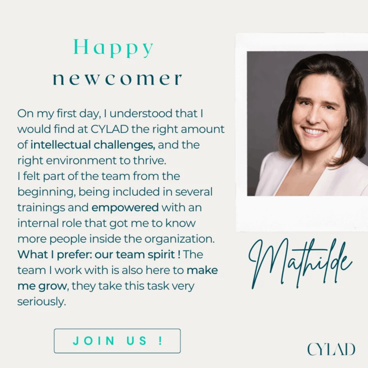 Chez CYLAD, nous avons à coeur d’offrir un environnement de travail dynamique, riche de missions stimulant intellectuellement et dans une atmosphère bienveillante avec un fort esprit d’équipe.
